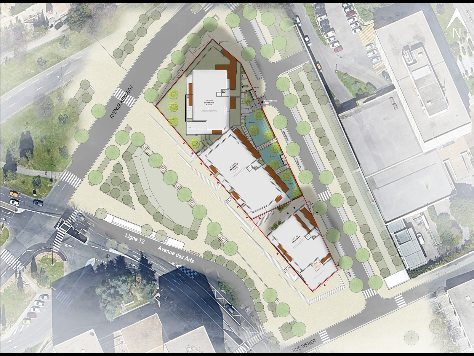 Bâtiment 1 : 60 logements en accession en R+5, type T2 (18 unités), T3 (32 unités) et T4 (10 unités).